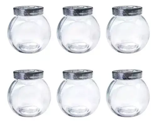 Organize sua despensa com estilo e funcionalidade usando este conjunto com 6 potes de vidro, cada um com capacidade de 100ml. As tampas plásticas cromadas garantem um fechamento seguro, mantendo seus alimentos frescos por mais tempo.